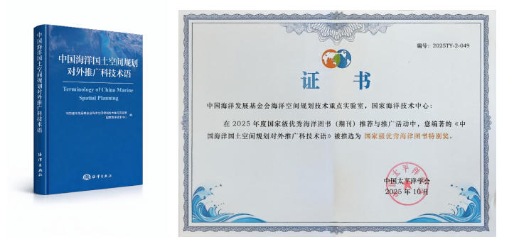 这份荣誉凝聚团队智慧。该书历经数年调研打磨,充分吸纳我国海洋空间规划四十余年发展与演进成果,结合团队十三年间海洋空间规划国际合作实践经验,中英文对照从背景、理念、规划类别、规划实施、规划技术(指标)和国际海洋空间规划等六个层面将科技术语分层分类呈现,建立“术语译名+内涵解析+权威出处”三维阐释框架。译文兼顾中国语言特质与国际接受习惯,既避免概念输出的“自说自话”,又坚守核心内涵准确性。作为打通中外海洋空间规划交流合作壁垒的“翻译官”,该书核心价值在于构建融通中外的科技术语传播体系,填补了我国海洋空间规划对外推广术语公共产品的空白。